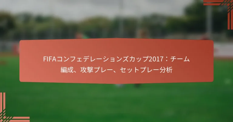 FIFAコンフェデレーションズカップ2017は、コーナーキックやフリーキックを通じてセットプレー戦略の重要性を強調し、試合結果を左右する重要な要素となりました。チームは防御の隙を突くために革新的な戦術やフォーメーションを披露し、これらの瞬間を重要な得点機会に変えました。 FIFAコンフェデレーションズカップ2017で使用された主なセットプレー戦略は何ですか? セットプレー戦略はFIFAコンフェデレーションズカップ2017において重要な役割を果たし、試合のダイナミクスや結果に影響を与えました。チームはコーナーキックやフリーキックを効果的に利用して得点機会を創出し、さまざまな戦術的アプローチを示しました。 サッカーにおけるセットプレーの重要性の概要 コーナーキックやフリーキックを含むセットプレーは、試合の流れを大きく変える可能性のあるサッカーの重要な瞬間です。これらはチームに得点のための構造化された機会を提供し、しばしば守備側にとって高圧的な状況を引き起こします。セットプレーを効果的に実行する能力は、特に接戦の試合において勝敗を分ける要因となることがあります。 セットプレーに優れたチームは、これらの状況に特化したトレーニングセッションを設け、攻撃と防御の戦略の両方を強調します。セットプレーの予測可能性は、チームが特定のプレーを計画することを可能にし、全体的なゲーム戦略の重要な要素となります。 トップチームによる成功した戦略の分析 コンフェデレーションズカップのトップチームは、相手の弱点に基づいてセットプレーの戦略を多様化しました。例えば、あるチームは混乱を引き起こしスペースを作るためにショートコーナーを好み、他のチームはヘディングを狙った高い選手に向けてボックス内に直接ボールを供給することに依存しました。 ショートコーナー: 守備者をポジションから引き出し、ミスマッチを作るために使用される。 インスイングとアウトスイング: 守備者を混乱させるために異なる配球角度を使用。 デコイラン: キープレーヤーから守備者を引き離すために走る選手。 これらの戦略は、チームがセットプレーから得点するチャンスを最大化するために、よく練習されたルーチンによって補完されることが多かったです。 試合結果に対するセットプレーの影響 セットプレーはトーナメント中の試合結果に大きな影響を与えました。コーナーキックやフリーキックから得点されたゴールはしばしば勢いを変え、チームに心理的な優位性をもたらしました。多くの場合、単一のセットプレーゴールが試合の流れを変え、逆転や決定的な勝利につながることがありました。 トーナメントの統計によると、得点のかなりの割合がセットプレーから生まれ、その重要性が強調されました。セットプレーを効果的に守れなかったチームはしばしば不利な立場に立たされ、堅牢な防御戦略の必要性が浮き彫りになりました。 トーナメント中の注目すべきセットプレーのプレー コンフェデレーションズカップでは、いくつかの記憶に残るセットプレーが際立ちました。ハイライトの一つは、完璧に実行されたフリーキックで、見事なゴールを生み出し、関与した選手の精度とスキルを示しました。もう一つの注目すべき瞬間は、試合の終盤に劇的な同点ゴールをもたらしたコーナーキックで、セットプレーに関連する高いリスクを示しました。 フリーキックゴール: ボックスの外からのカーブしたシュートが上隅に決まった。 ラストミニッツ同点ゴール: フリックされたコーナーキックをストライカーが決めた。 これらのプレーはファンを魅了しただけでなく、チームがセットプレーに持ち込んだ戦術的な深さを際立たせました。 戦術の進化に関する専門家のコメント 専門家は、コンフェデレーションズカップにおけるセットプレーの戦術の進化がサッカーの広範なトレンドを反映していると指摘しました。チームはデータ分析を活用してセットプレー戦略を策定し、相手の防御の弱点を特定しています。この分析的アプローチにより、チームはこれらの弱点を突くためのカスタマイズされたセットプレールーチンを作成できます。 さらに、トレーニングにおける技術の統合は、選手がセットプレー中のポジショニングやタイミングを理解するのを助けています。コーチは、選手が試合中の高圧的な状況に備えるために、これらのシナリオを練習する重要性を強調しています。 サッカーが進化し続ける中で、セットプレーの重要性はますます高まると考えられ、国際舞台で成功を目指すチームにとって不可欠な焦点となるでしょう。 トーナメント中、チームはどのようにコーナーキックを実行しましたか? FIFAコンフェデレーションズカップ2017では、チームは得点機会を最大化するためにさまざまなコーナーキック戦略を採用しました。これらの戦略には、特定のフォーメーション、選手のポジショニング、そして防御の弱点を突