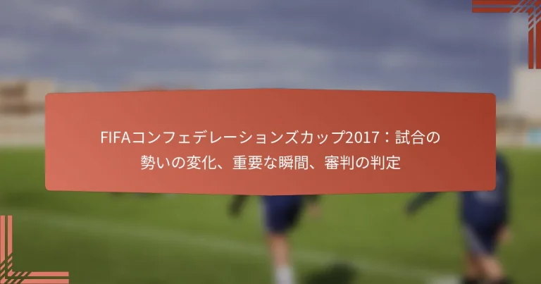 FIFAコンフェデレーションズカップ2017では、試合の結果を決定づける重要な瞬間が見られ、ダイナミックな試合の流れの変化が披露されました。重要なゴール、戦術の変更、重要な審判の決定などのクリティカルな瞬間は、チームのパフォーマンスに影響を与えるだけでなく、ファンにとって忘れられない体験を生み出しました。これらの要素の影響は、トーナメントの激しさと予測不可能性を際立たせました。 FIFAコンフェデレーションズカップ2017の試合における主要な流れの変化は何でしたか? FIFAコンフェデレーションズカップ2017における主要な流れの変化は、試合の結果に大きな影響を与え、しばしば試合の軌道を変えることがありました。これらの変化は、得点プレイ、戦術的調整、選手の怪我などの重要な瞬間によって特徴づけられ、すべてがチームのパフォーマンスを決定する上で重要な役割を果たしました。 試合のダイナミクスと転換点の分析 FIFAコンフェデレーションズカップにおける試合のダイナミクスは、しばしば一方のチームから他方のチームへと流れを変える特定の転換点によって決定されました。たとえば、突然のゴールはチームを活気づけ、攻撃性と自信を高める一方で、ゴールを許すことは相手を士気を失わせ、パフォーマンスに悪影響を及ぼすことがあります。 重要な転換点には、得点プレイだけでなく、守備のミスやゴールキーパーによる重要なセーブの瞬間も含まれました。これらの事例は、試合の流れの変化に応じてチームがフォーメーションやプレースタイルを調整することにつながることがよくありました。 得点プレイがチームパフォーマンスに与える影響 得点プレイは、トーナメントを通じてチームパフォーマンスに深い影響を与えました。タイミングの良いゴールは、チームの士気を高め、より攻撃的なプレイを促す触媒となることがあります。逆に、ゴールを許すことはしばしば守備的なマインドセットを引き起こし、創造性を抑制し、さらなるミスを招くことがあります。 前半に得点されたゴールは、試合の残りの部分のトーンを設定することがよくあります。 試合終盤のゴールは、しばしば流れを変え、相手チームが同点に追いつこうとする必死の試みを引き起こします。 得点機会を活かしたチームは、試合のダイナミクスを維持する傾向があります。 コーチによる戦術変更の影響 試合中にコーチが行う戦術変更は、流れの変化に影響を与える上で重要でした。コーチは、展開するダイナミクスに応じてフォーメーションや選手の役割を調整することが多く、これがチームのパフォーマンスを向上させることもあれば、逆効果をもたらし、さらなる複雑さを引き起こすこともあります。 たとえば、ゴール後に守備的なフォーメーションから攻撃的なフォーメーションに切り替えることでチームが活気づくことがありますが、リードを保ったまま保守的なアプローチを取ると、相手からのプレッシャーを招くことがあります。これらの戦術変更の効果は、フィールド上の選手の即時の反応にしばしば現れました。 試合の流れにおける選手の怪我の役割 選手の怪我は、トーナメント中の試合の流れを変える上で重要な役割を果たしました。重要な選手の欠場は、チームの戦略や士気を乱し、コーチが元のゲームプランに合わない迅速な調整を余儀なくされることがあります。 怪我はしばしばチームダイナミクスの変化を引き起こし、交代選手が異なるスキルやエネルギーレベルをもたらしました。チームメイトを失うことの心理的影響は、残された選手にも影響を及ぼし、より良いパフォーマンスを発揮するように動機づけることもあれば、全体的なチームパフォーマンスの低下を引き起こすこともあります。 試合間の流れの変化の比較分析 FIFAコンフェデレーションズカップの異なる試合間の流れの変化を比較すると、チームが重要な瞬間にどのように反応するかのパターンが明らかになります。いくつかのチームは、ゴールを許した後に迅速にコントロールを取り戻すレジリエンスを示しましたが、他のチームは回復に苦労しました。 たとえば、強固な守備構造を維持していたチームは、流れの変化を管理するのが得意で、プレッシャーを吸収し、効果的にカウンターアタックを行うことができました。対照的に、堅実な守備なしに攻撃プレイに依存していたチームは、迅速なカウンターアタックに対して脆弱な状況に陥ることが多かったです。 FIFAコンフェデレーションズカップ2017を定義した重要な瞬間は何でしたか? FIFAコンフェデレーションズカップ2017は、試合の結果に大きな影響を与えた重要な瞬間がいくつかありました。重要なゴール、惜しいチャンス、そして重要な審判の決定がトーナメントを形作り、ファンや選手にとって記憶に残る体験を生み出しました。 重要なゴールとその意義の概要 トーナメントにおける重要なゴールは、しばしば流れを変え、試合の軌