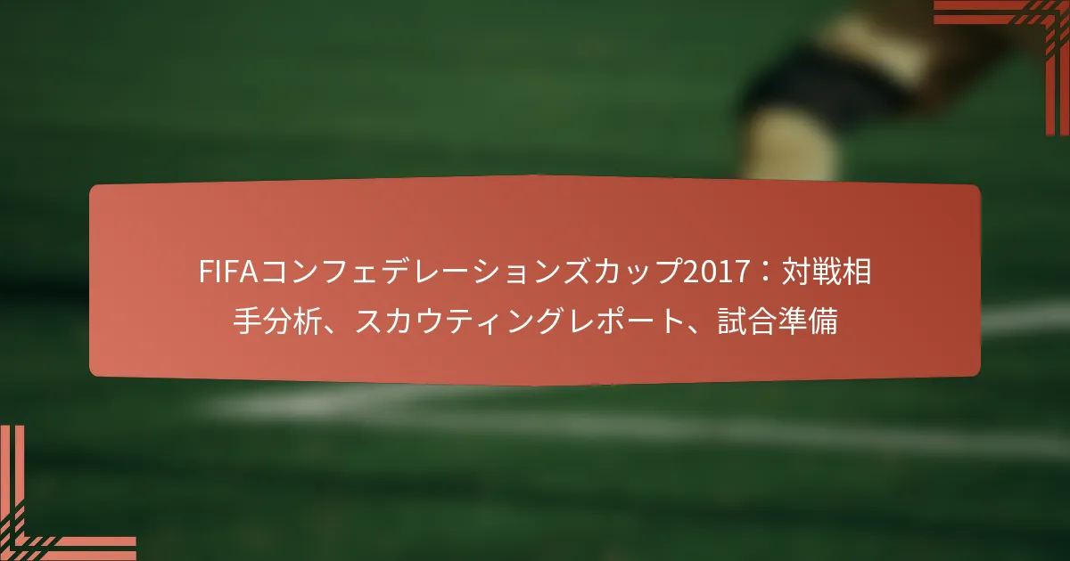 FIFAコンフェデレーションズカップ2017は、ドイツ、ロシア、チリ、ポルトガルなどの8つの著名なチームを集め、それぞれが独自のサッカーのスタイルと強みを披露しました。効果的な対戦相手の分析は、戦術的なセッティング、選手の能力、最近のパフォーマンスに焦点を当て、試合の準備と戦略を向上させるために重要です。スカウティングレポートは、このプロセスにおいて重要な役割を果たし、選手の統計、チームのダイナミクス、戦術的なフォーメーションに関する詳細な洞察を提供し、フィールドでの意思決定をサポートします。