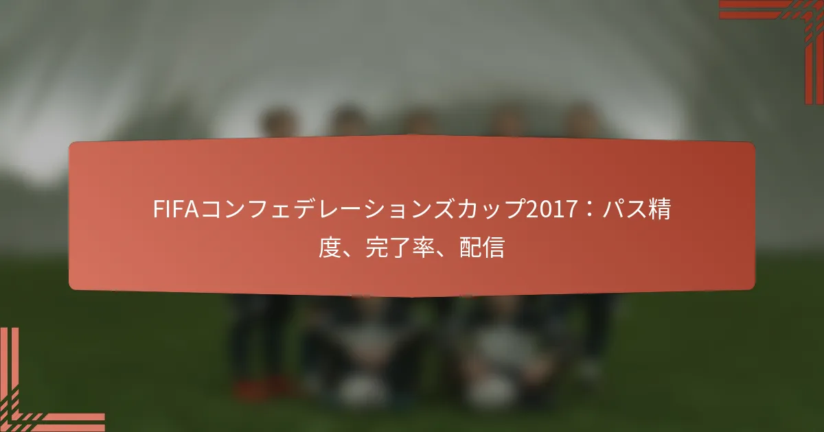 FIFAコンフェデレーションズカップ2017におけるパス精度は、データ収集方法、統計分析技術、選手パフォーマンス評価のための特定の基準を組み合わせて測定されました。このアプローチは、トーナメント全体でチームがどのようにパス戦略を実行したかについての洞察を提供しました。